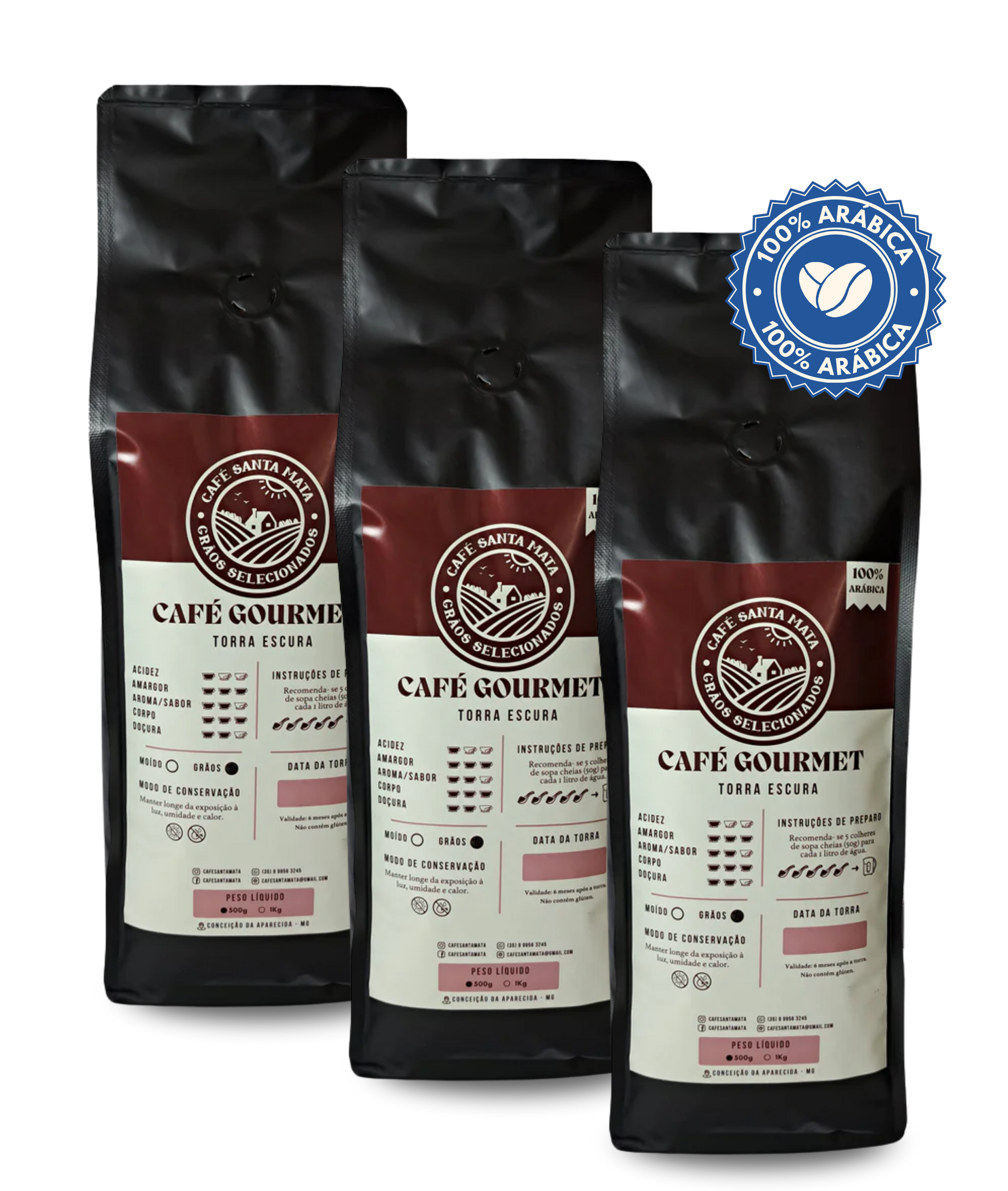O Kit 500g - Torra Escura é composto por 3 pacotes de Café Santa Mata de 500g Torra Escura.